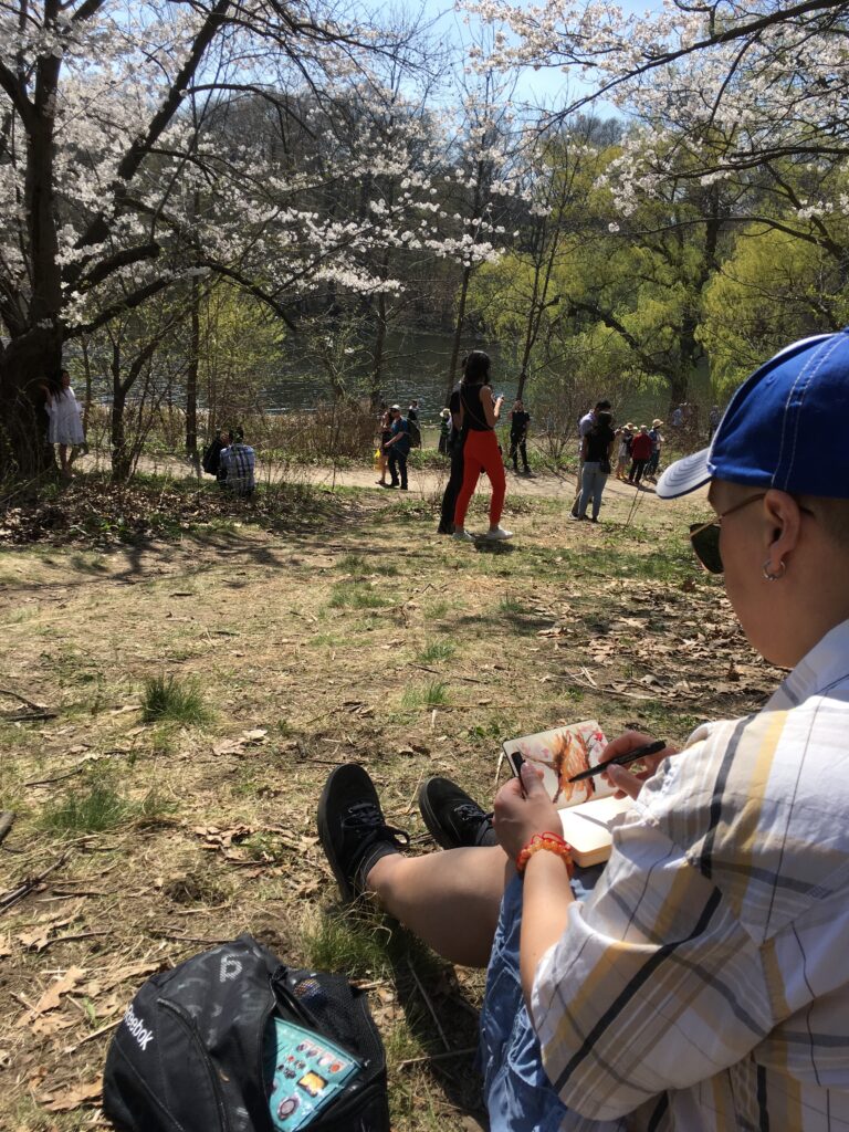 Working primarily in acrylics, I explore the dialogue between bold shapes and fluid transitions. Whether I am painting on the traditional texture of canvas, the organic grain of wood panels, or the intimate pages of my sketchbooks, my goal remains the same: to translate the intangible “feeling” of an environment into a visual language.